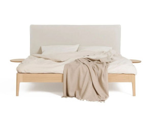 Деревянная двуспальная кровать с мягким изголовьем