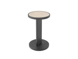 Круглый журнальный столик из дерева и травертина