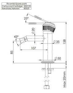 Remer Rubinetterie Смеситель для биде, однорычажный X style X 20