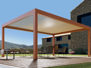Биоклиматическая пергола из алюминия с регулируемыми ламелями и освещением