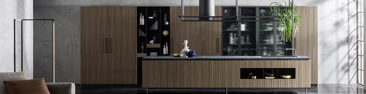Характеризуются трехмерным эффектом, создаваемым вертикальной фрезеровкой, которая также повторяется в стекле Scannellato Belga, которое характерно для дверей витрин. Кухня состоит из острова на ножках, увенчанного металлической конструкцией, которая объединяет цилиндрическую вытяжку, и колонн с дверями, витринами и открытыми пространствами, идеально интегрированными с гостиной. Кухня D90, разработанная Марко Тайеттой, вдохновлена ​​морским миром, благодаря наличию дверей и профилей, которые образуют тонкую защитную полосу вокруг верхней части. D90 имеет компактный и простой дизайн, а также практичные элементы, такие как дверцы навесных шкафов уменьшенной ширины, которые можно открывать сдвигом, или сквозной ящик полуострова.