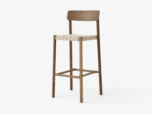 Барный стул из массива дерева с льняным сиденьем