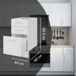 Кухонный шкаф напольный с 3 ящиками Агидель 40x82.5x58 см МДФ цвет белый