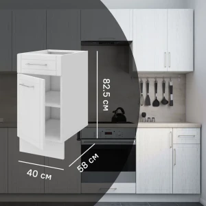 Кухонный шкаф напольный с ящиком Агидель 40x82.5x58 см МДФ цвет белый