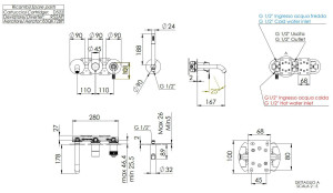 Однорычажный встраиваемый смеситель для ванны с ручным душем