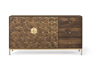 Шкаф из манго с выдвижными ящиками и распашными дверцами