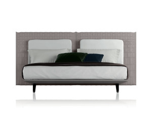 Двуспальная кровать из ткани с мягким изголовьем