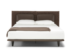 Кожаная двуспальная кровать с мягким изголовьем