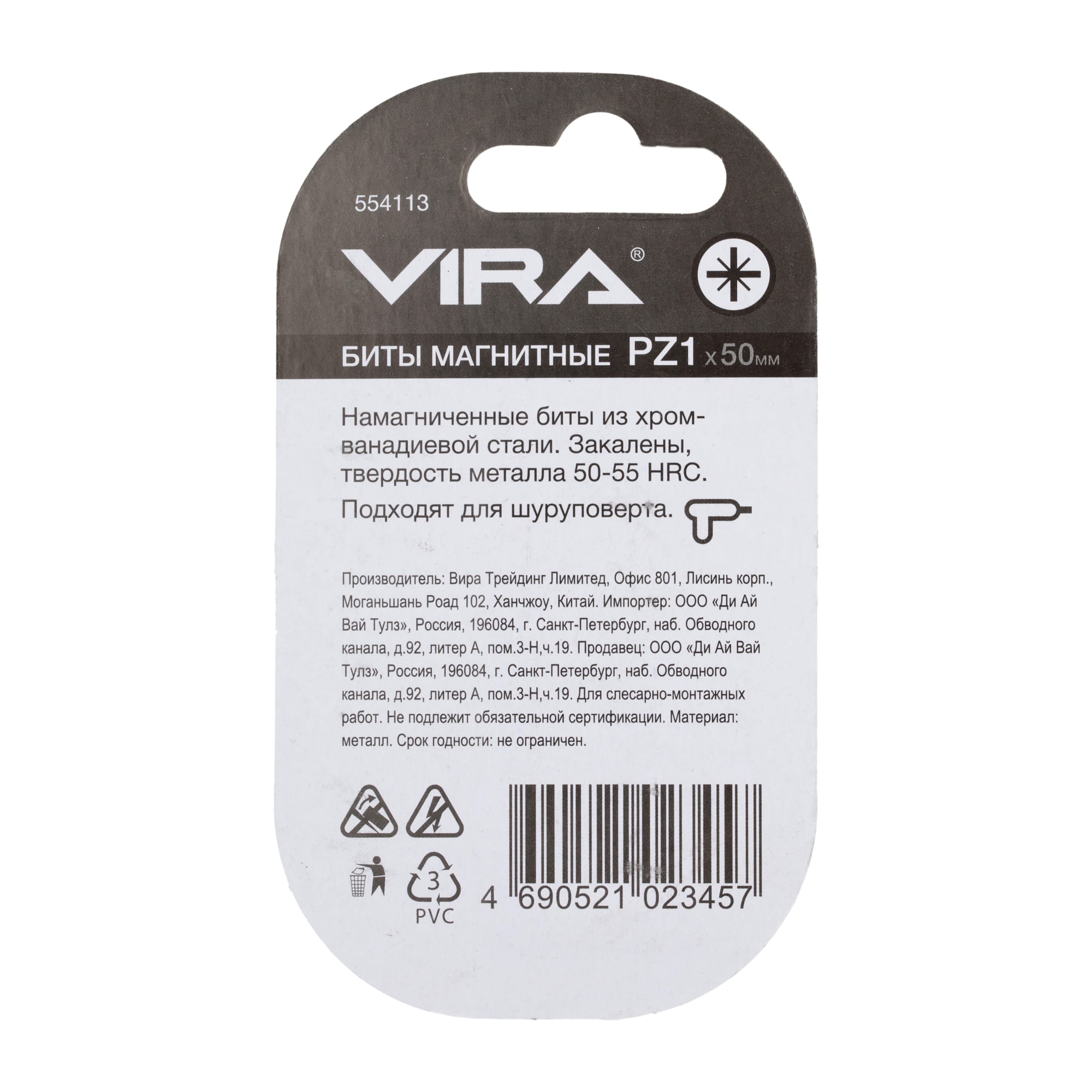 Набор бит VIRA PZ1 магнитные, 2 штуки для точного монтажа 82619653 STLM-0031913