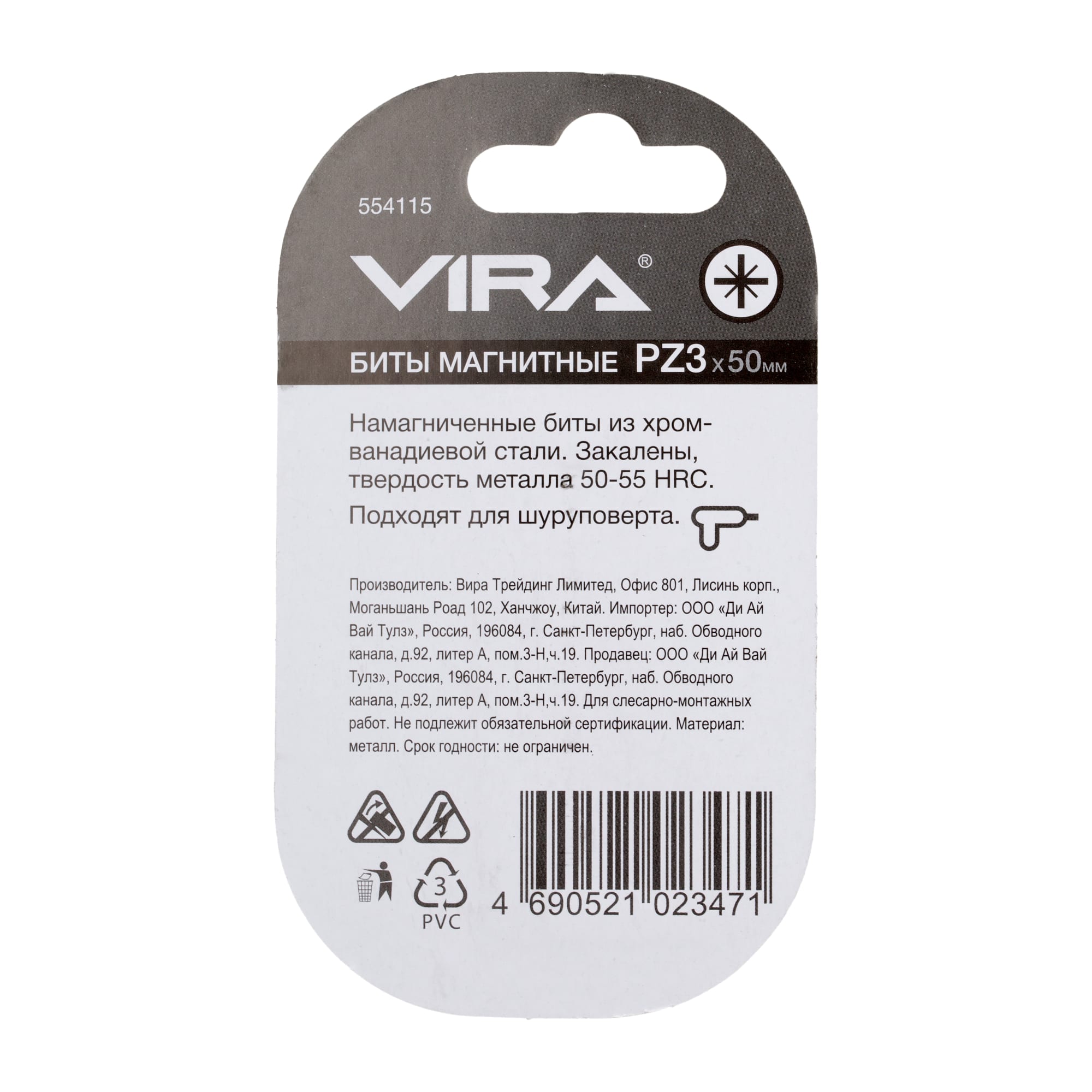 Набор бит крестовых VIRA PZ3 50 мм с магнитным наконечником, 2 шт 82619657 STLM-0031917