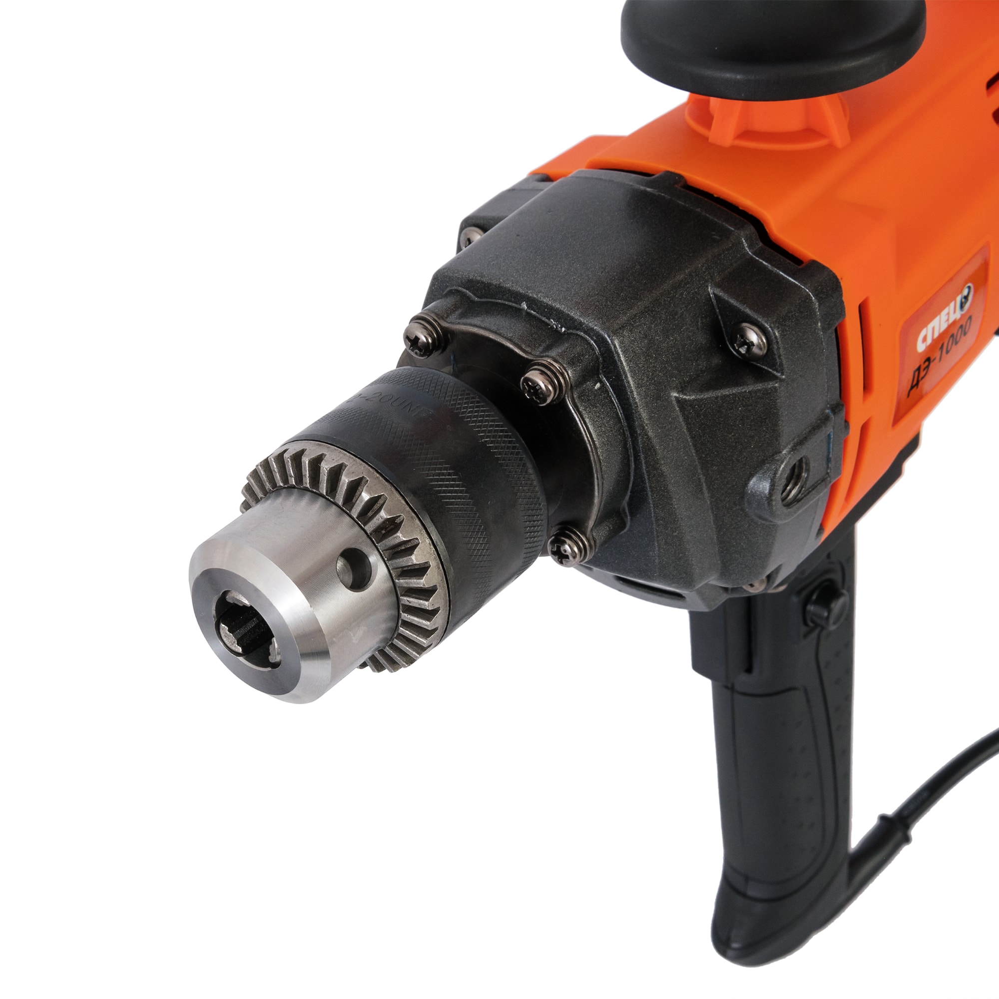 Профессиональная дрель-миксер СПЕЦ ДЭ-1000 сочетает высокую производительность и удобство использования при различных строительных задачах. Инструмент эффективно справляется со сверлением отверстий большого диаметра и приготовлением строительных растворов.