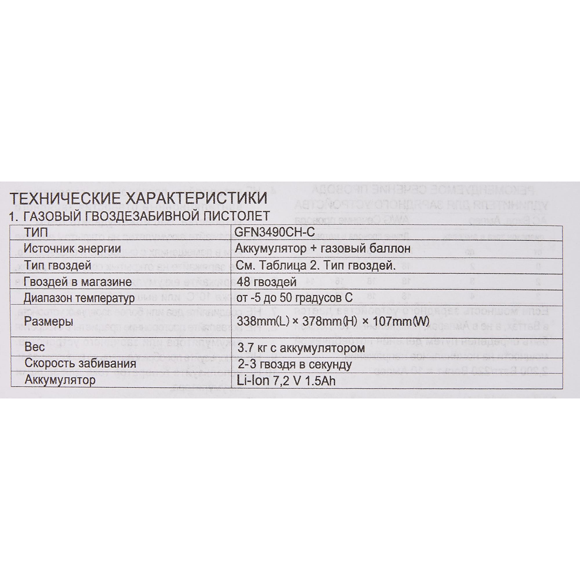 Тип продукта Пистолет гвоздезабивной газовый
