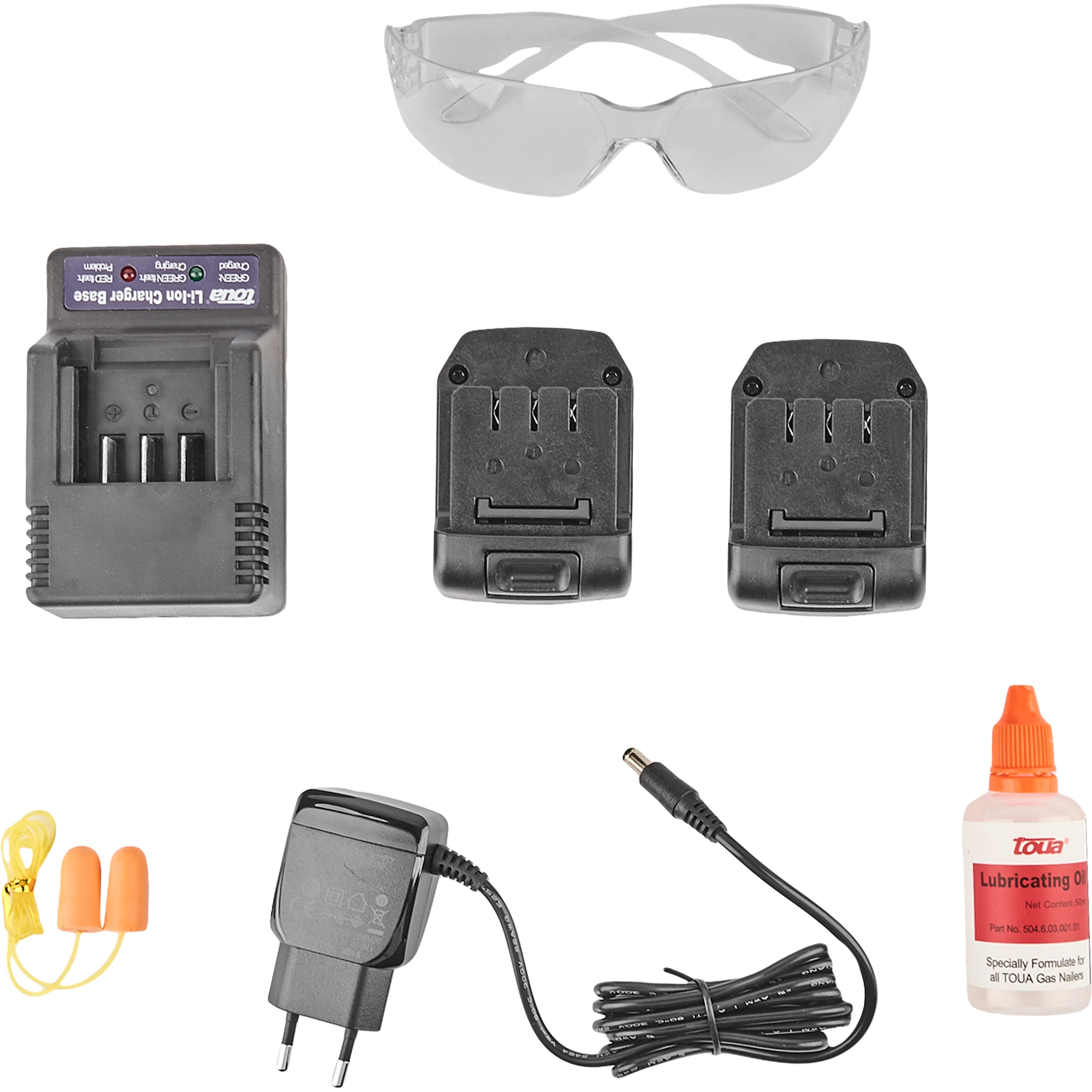 В комплект поставки входят два аккумулятора, зарядное устройство, пластиковый кейс для хранения и транспортировки, а также набор средств индивидуальной защиты для безопасной работы.