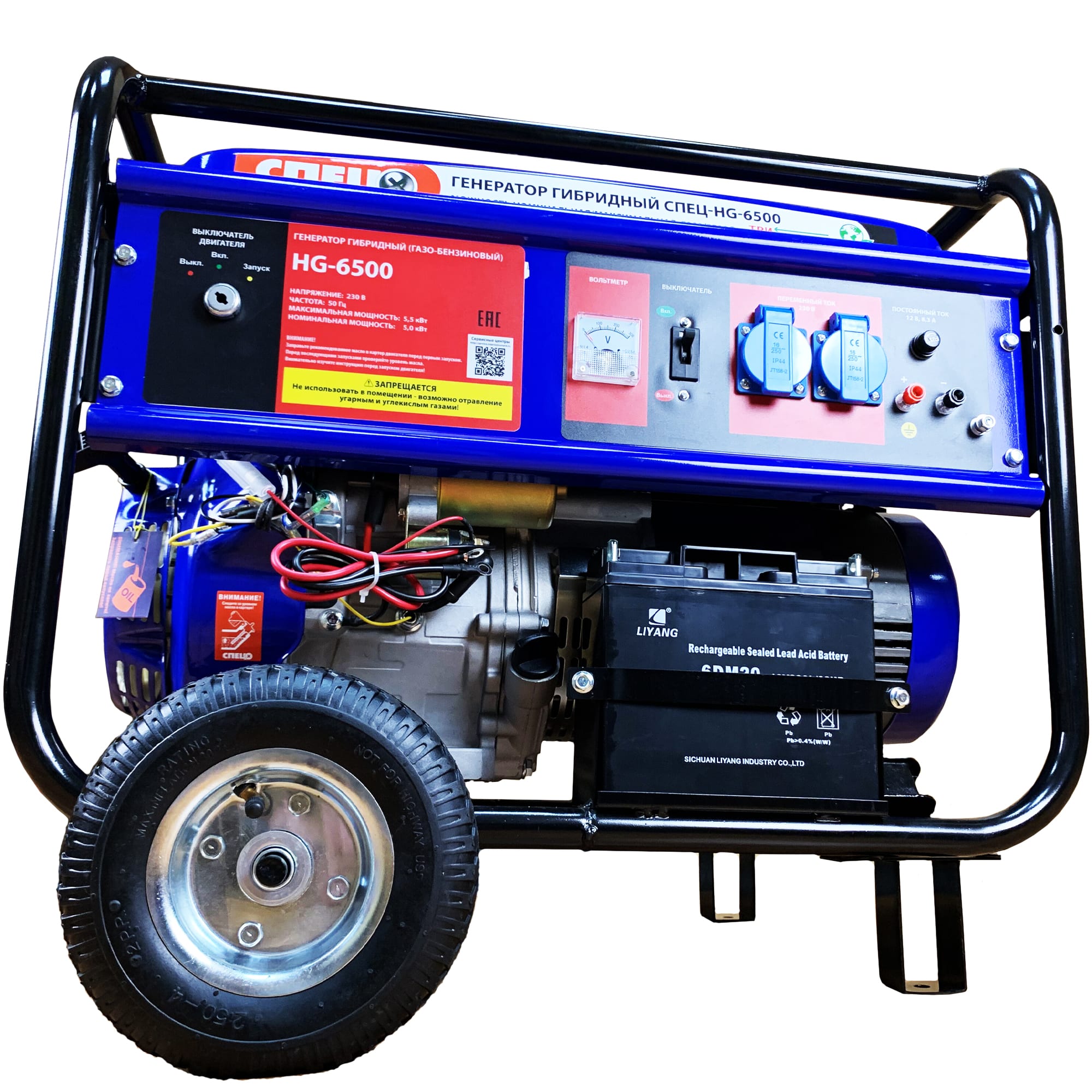 Гибридный генератор СПЕЦ обеспечивает стабильное электропитание мощностью 5500 Вт в полевых условиях, на стройплощадках и при аварийных ситуациях. Универсальное устройство работает на бензине АИ-92, баллонном или магистральном газе.