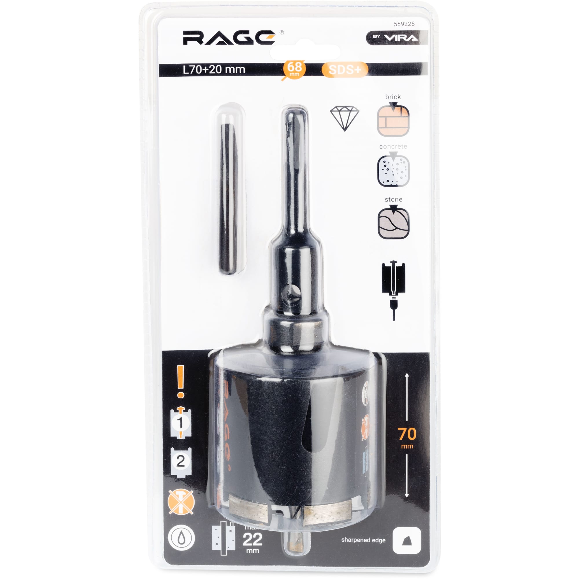 Алмазная коронка RAGE 68 мм для подрозетников по бетону 85102553 STLM-0058777