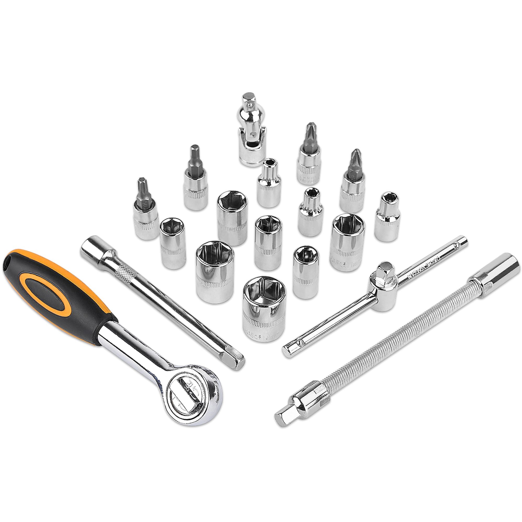 Тип инструмента в наборе Вороток, Клещи переставные, Ключ шестигранный (имбусовый), Молоток, Отвертка, Пассатижи/Плоскогубцы комбинированные, Трещотка