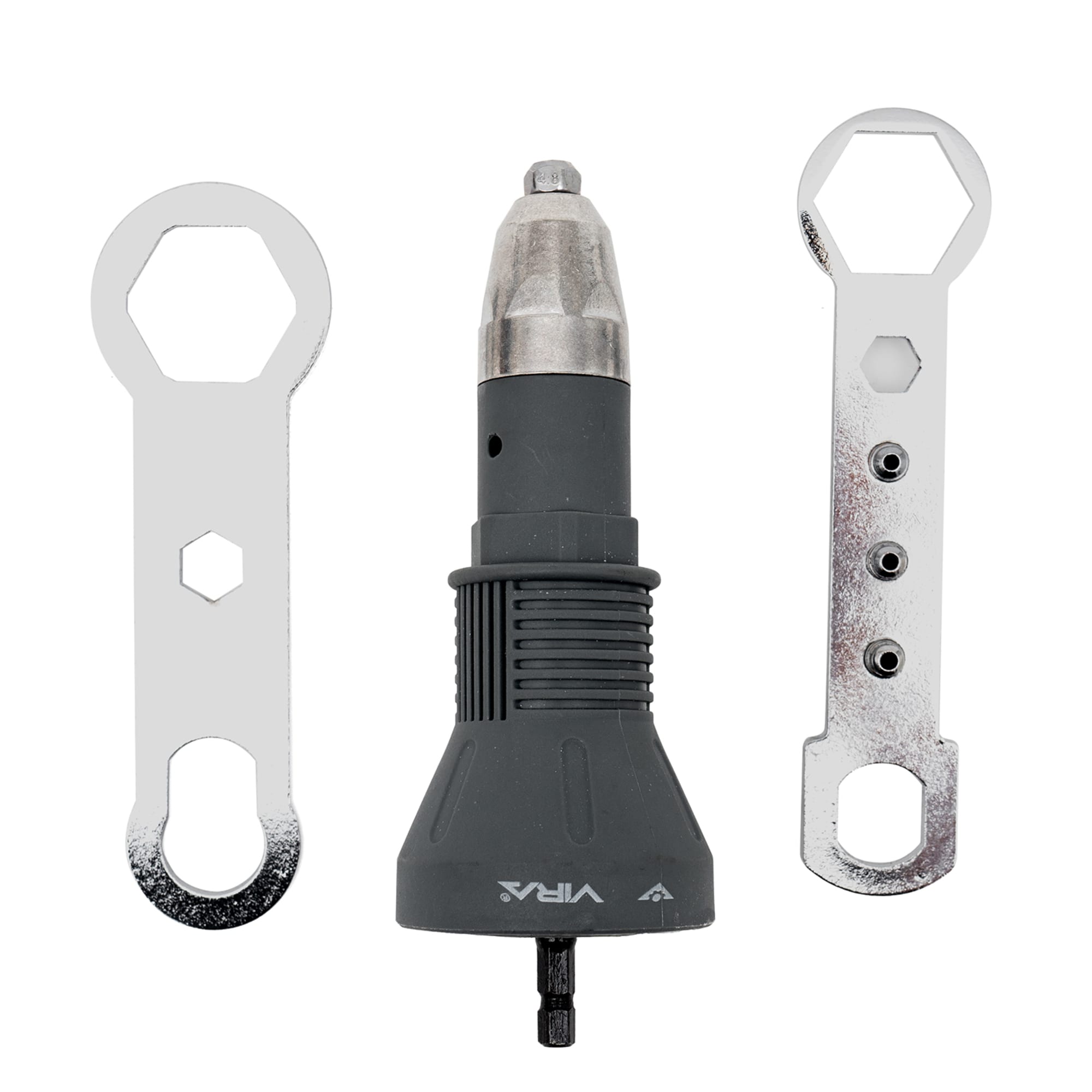 Универсальное приспособление VIRA превращает ваш шуруповерт в эффективный заклепочный инструмент для работы с крепежными элементами диаметром от 2,4 до 4,8 мм.
