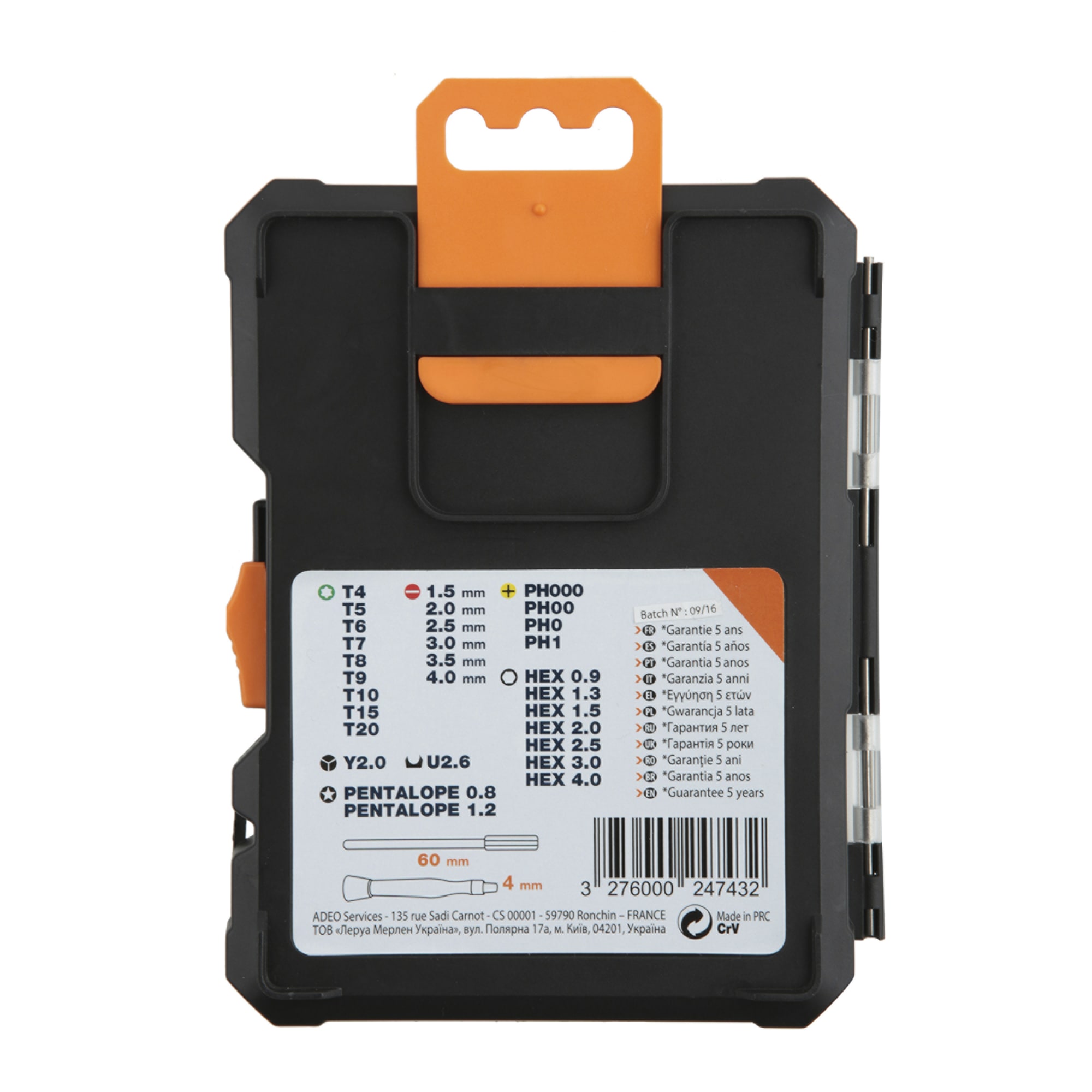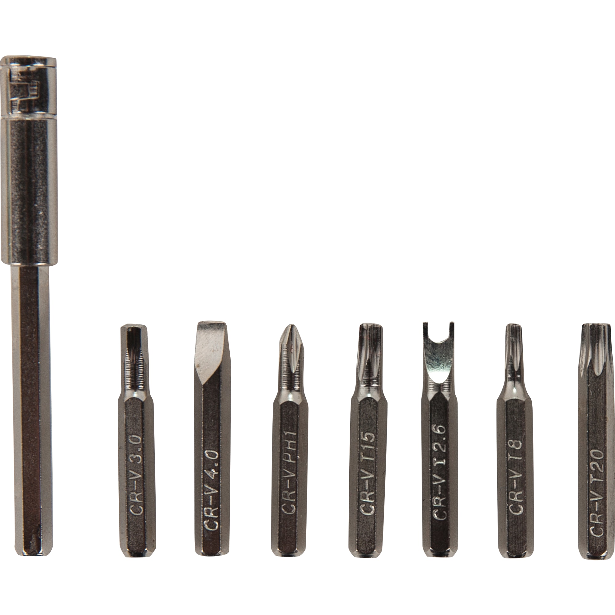 Размер шлица PH000, PH00, PH0, PH1, SL1.5, SL2, SL2.5, SL3, SL3.5, SL4, T4, T5, T6, T7, T8, T9, T10, T15, T20, HEX0.9, HEX1.5, HEX2, HEX2.5, HEX3, HEX4, TW2, SP2.6, Pentalobe 0.8, Pentalobe 1.2, HEX1.3