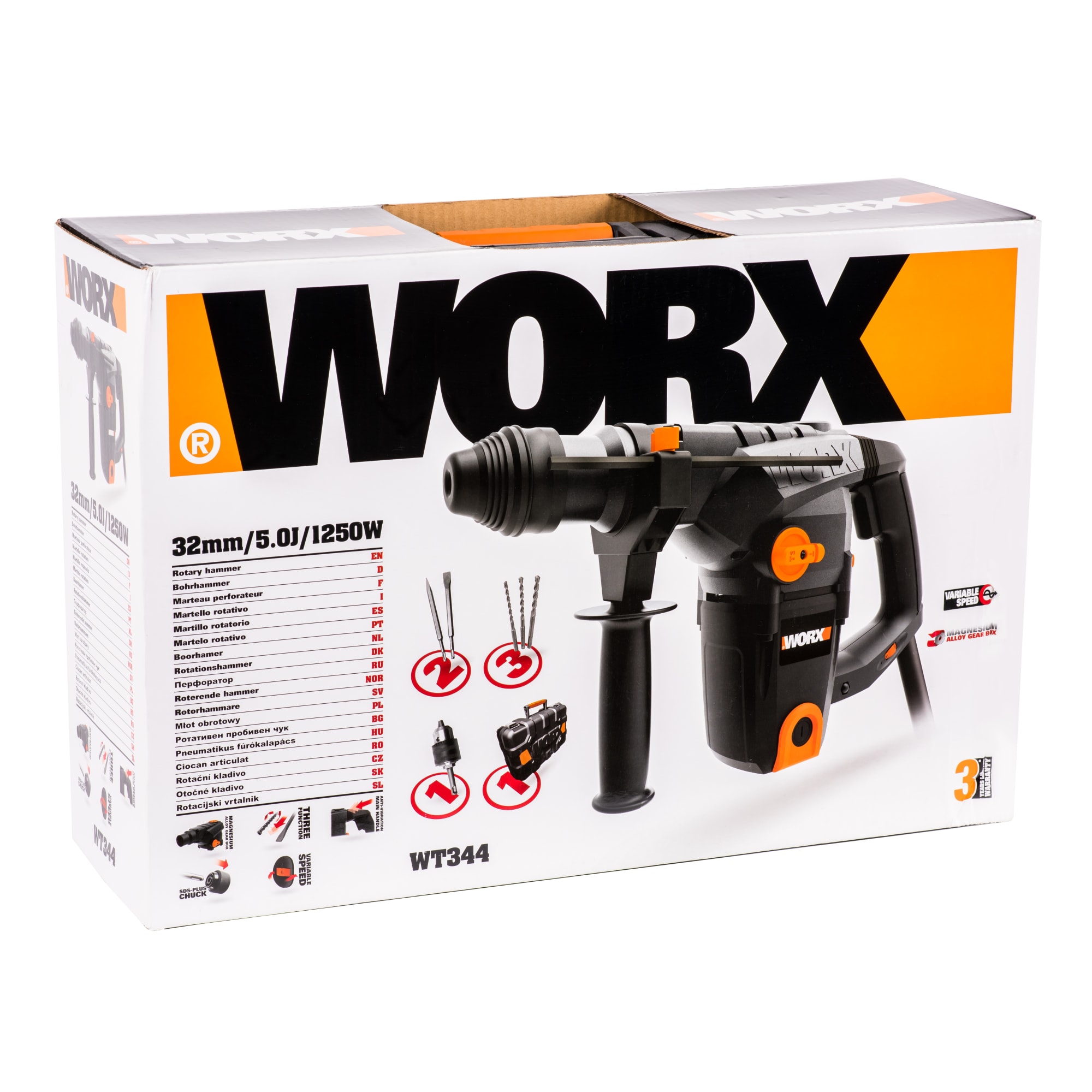 Сетевой перфоратор WORX WT344 сочетает высокую производительность 1250 Вт с продуманной эргономикой для комфортной работы с различными материалами.