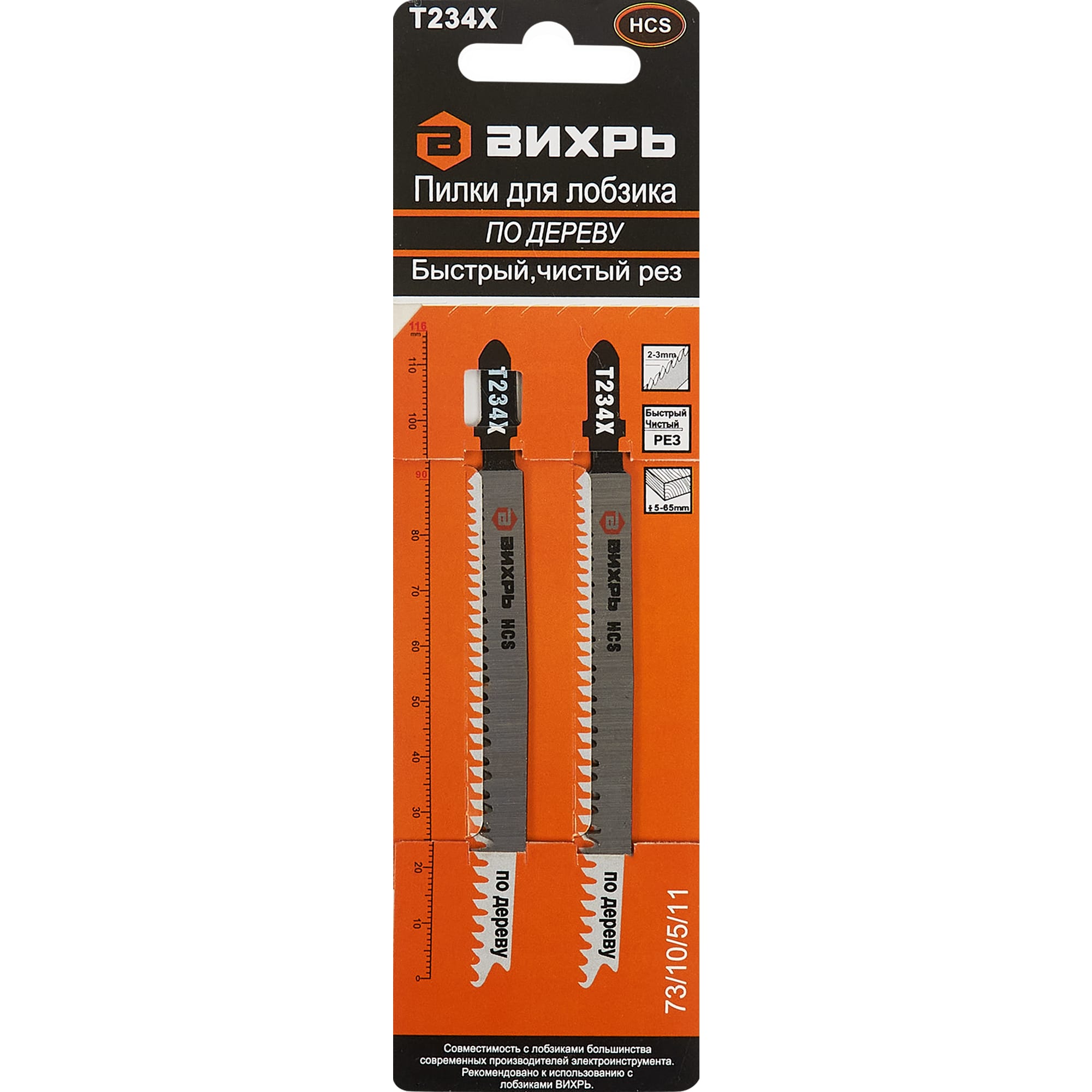 Пилки для лобзика Вихрь Т234Х по дереву с быстрым резом, 2 шт 85121110 STLM-0059074