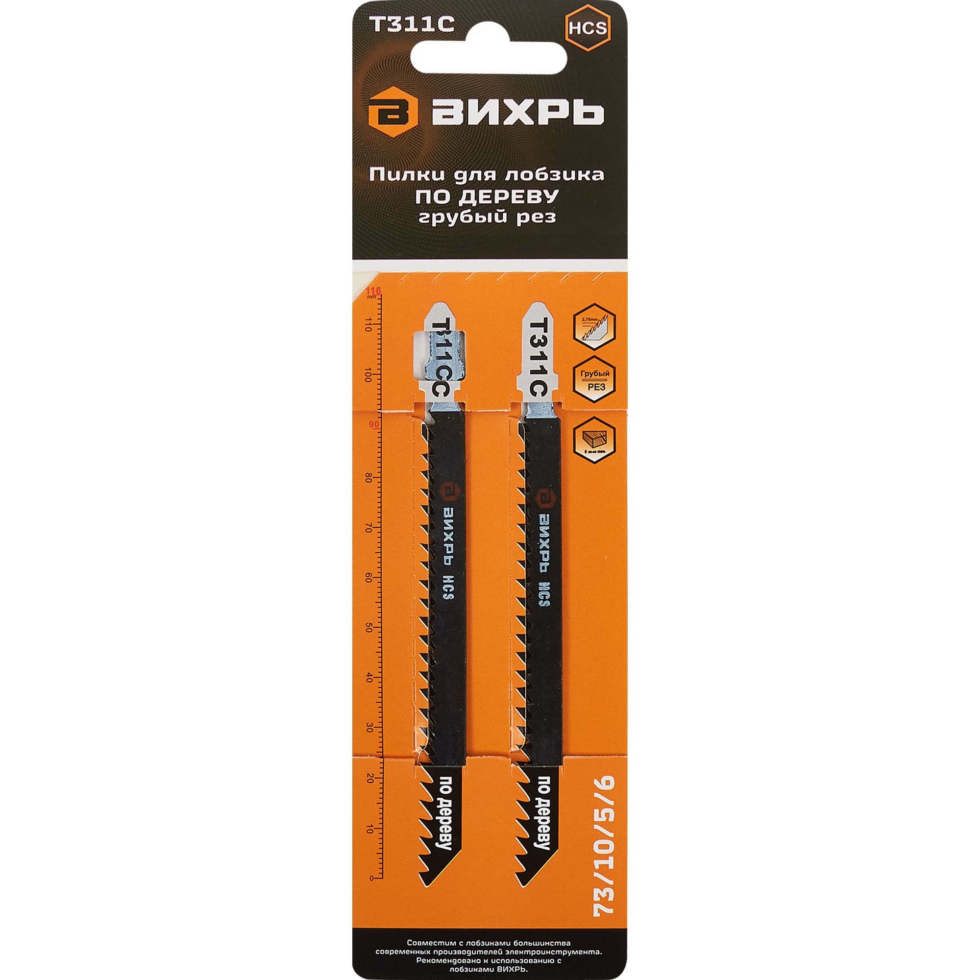 Пилки для лобзика Вихрь Т311C по дереву, 2 шт - быстрый рез 85121113 STLM-0059077
