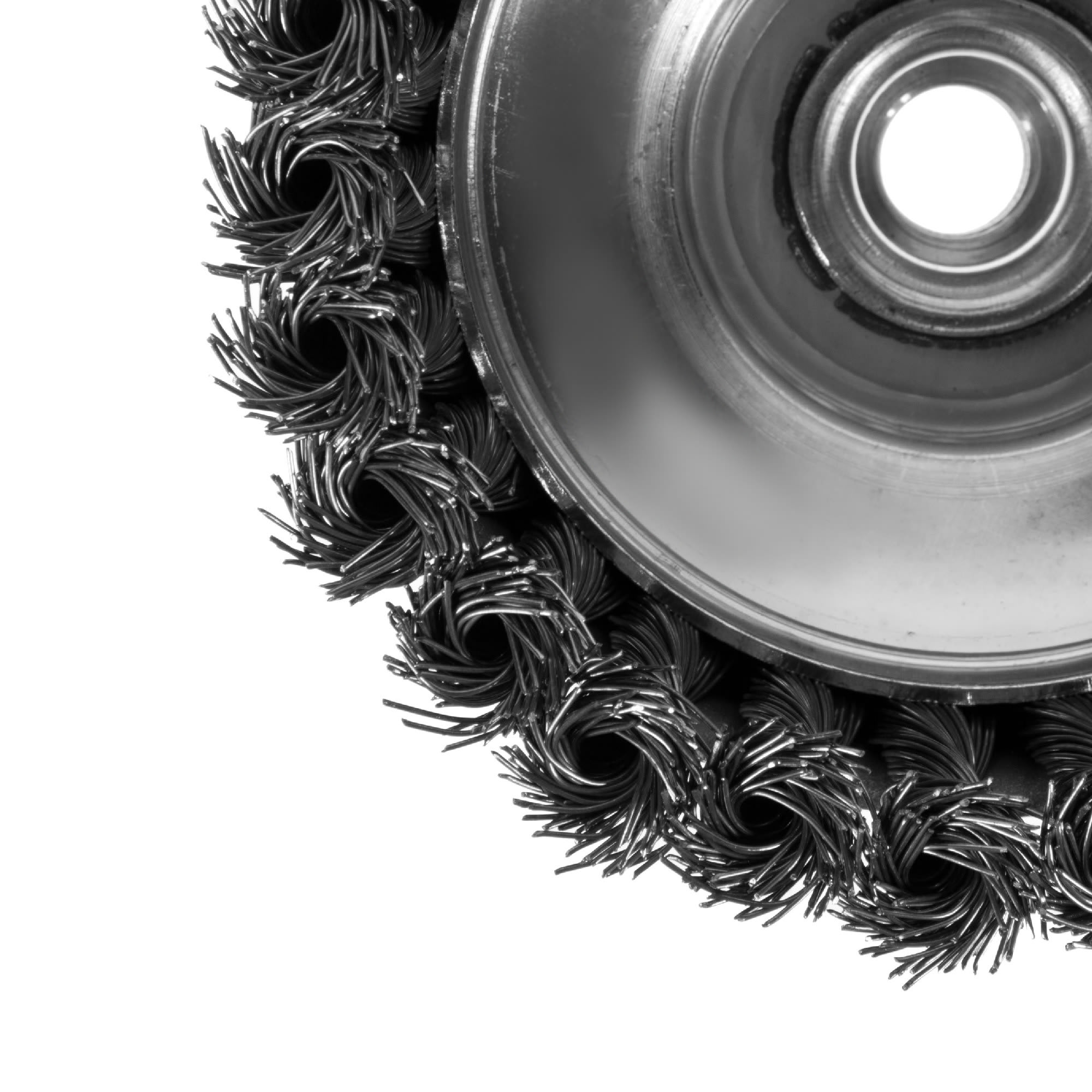 Чашечная щетка Dexter для углошлифовальных машин - надежное решение для быстрого удаления ржавчины и зачистки сварочных швов. Обеспечивает качественную обработку с сохранением целостности основания.