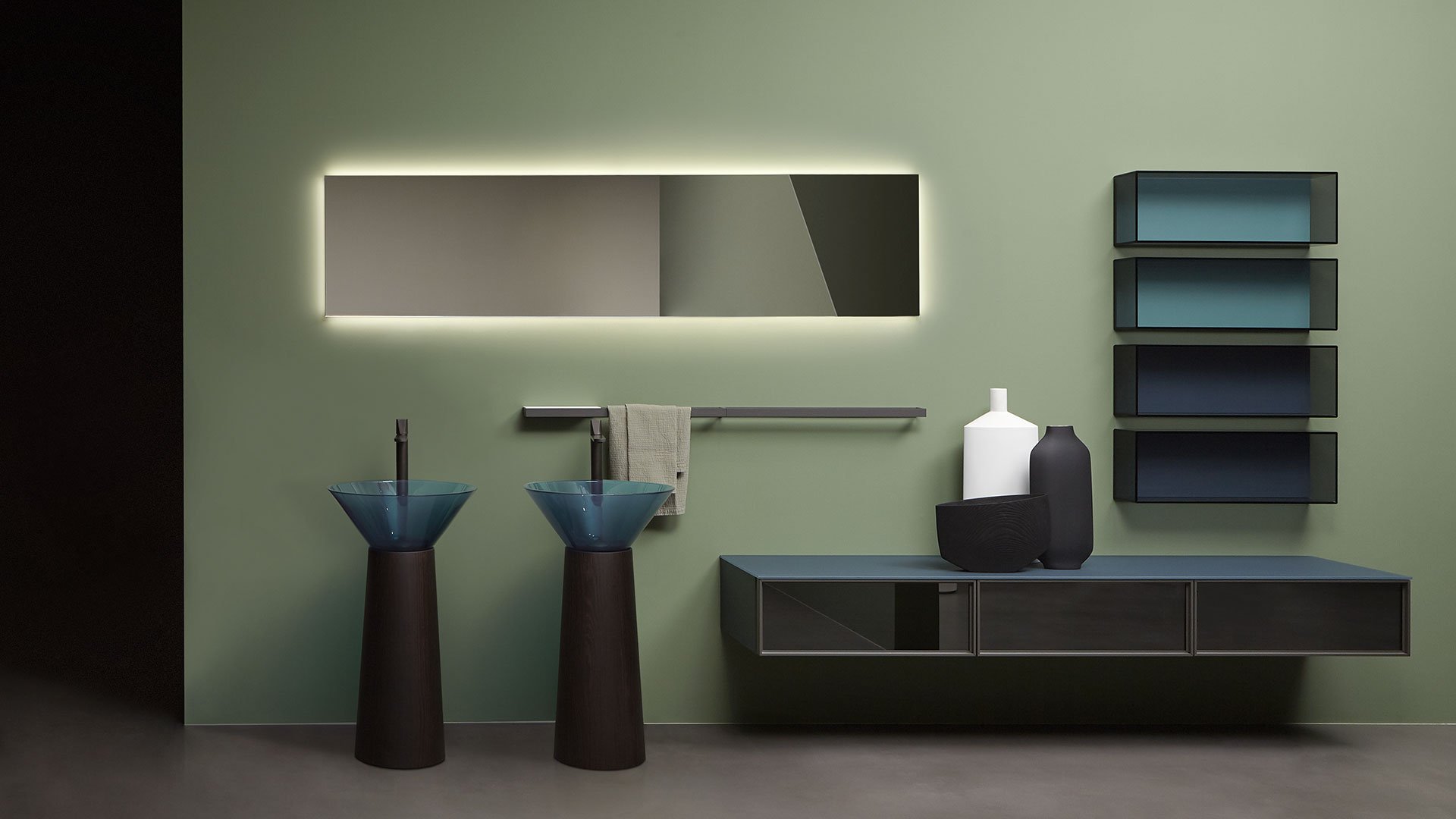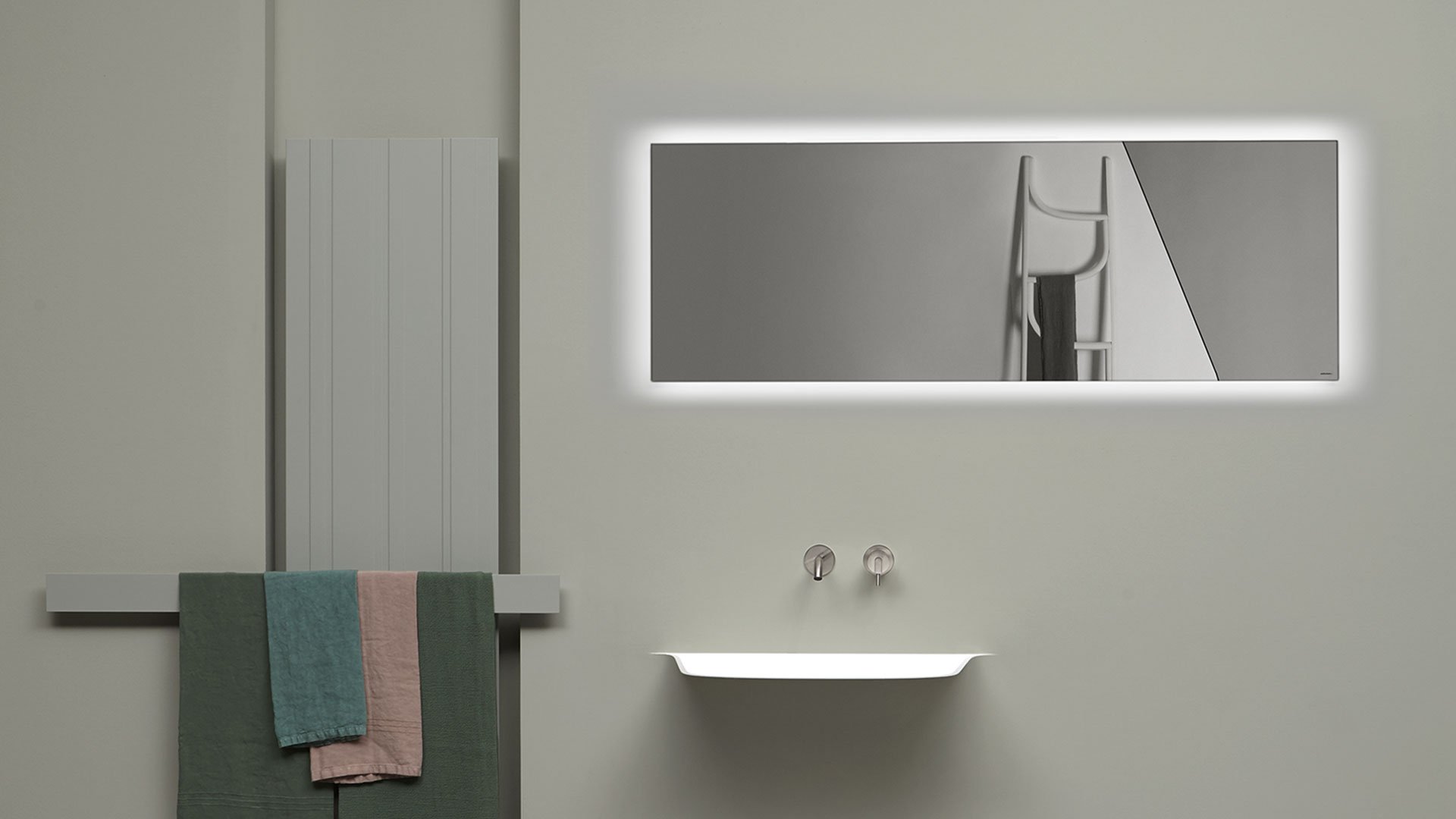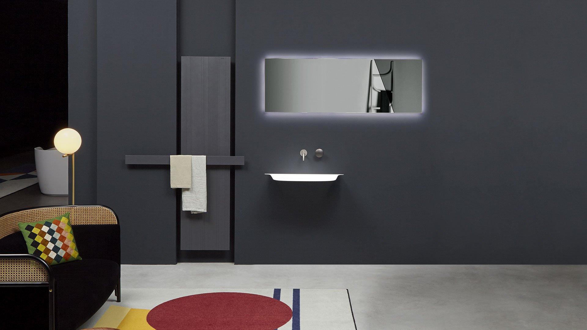 Незаменимое и минималистичное, Apice - это зеркало толщиной 4 мм без краев, доступное со светодиодной подсветкой или без нее. Четкое изображение украшено зеркальной частью из бронзы или дыма, которая делит поверхность на две части, придавая динамизм контексту. Знак, который нарушает статическое равновесие композиции, добавляя ценности форме.