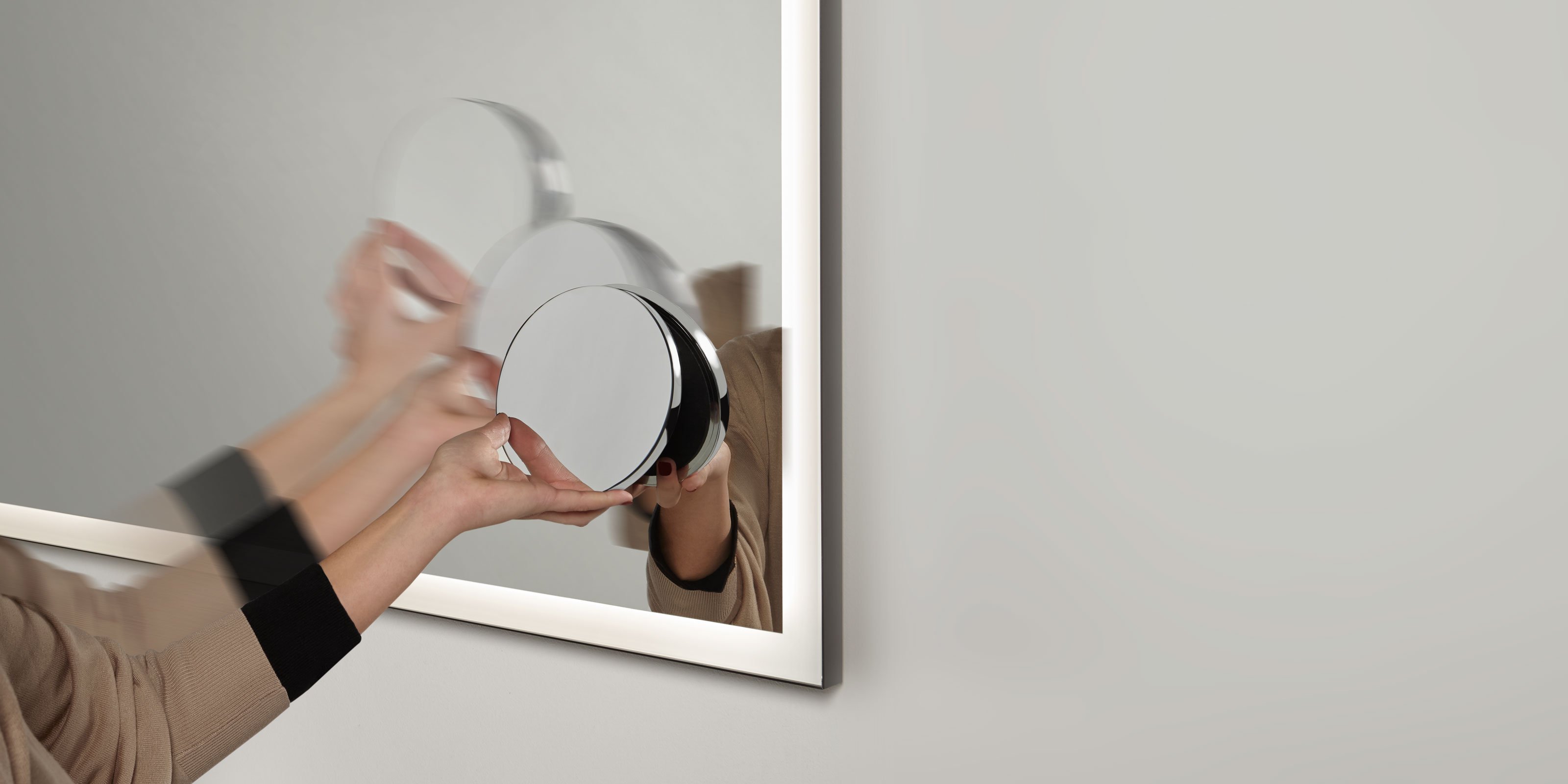 Зеркало для antoniolupi - это объект, который постоянно преображается, даже по своей сути, главный герой среды ванной комнаты, способный удовлетворить конкретные потребности тех, кто его использует, но также и расширить пространство, открыть новые перспективы, улучшить стиль мебели за счет отражений и постоянные визуальные ссылки. Чтобы увеличить функциональность зеркал Vertice, Fila и Vario, antoniolupi разработал интеллектуальное и элегантное решение, которое благодаря простому техническому устройству позволяет создать движущийся спутник на поверхности зеркала, чтобы он всегда был точно расположен. круглая лупа перемещается в соответствии с потребностями тех, кто ею пользуется, перемещая ее в любую точку зеркала, потому что она тесно связана благодаря магниту, вставленному в конструкцию. Простое и интеллектуальное решение, которое позволяет использовать его для разных типов пользователей и их конкретных физических характеристик. Чистый, простой и линейный, но всегда развивающийся для удовлетворения потребностей и новых привычек, связанных с заботой о себе.