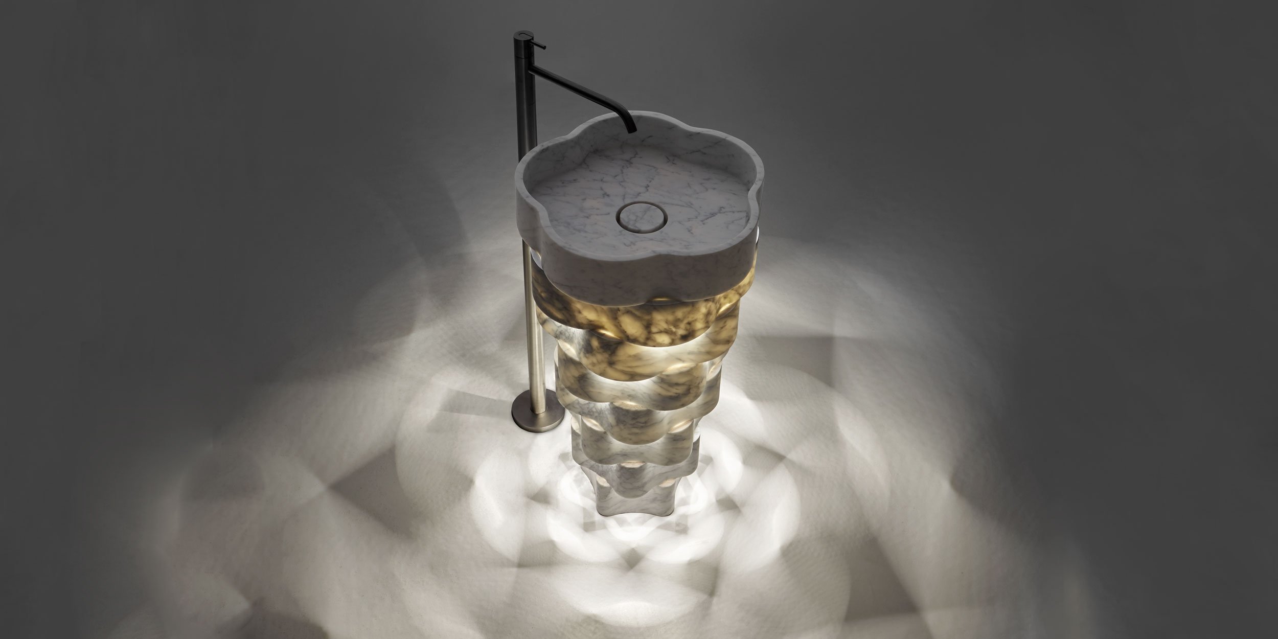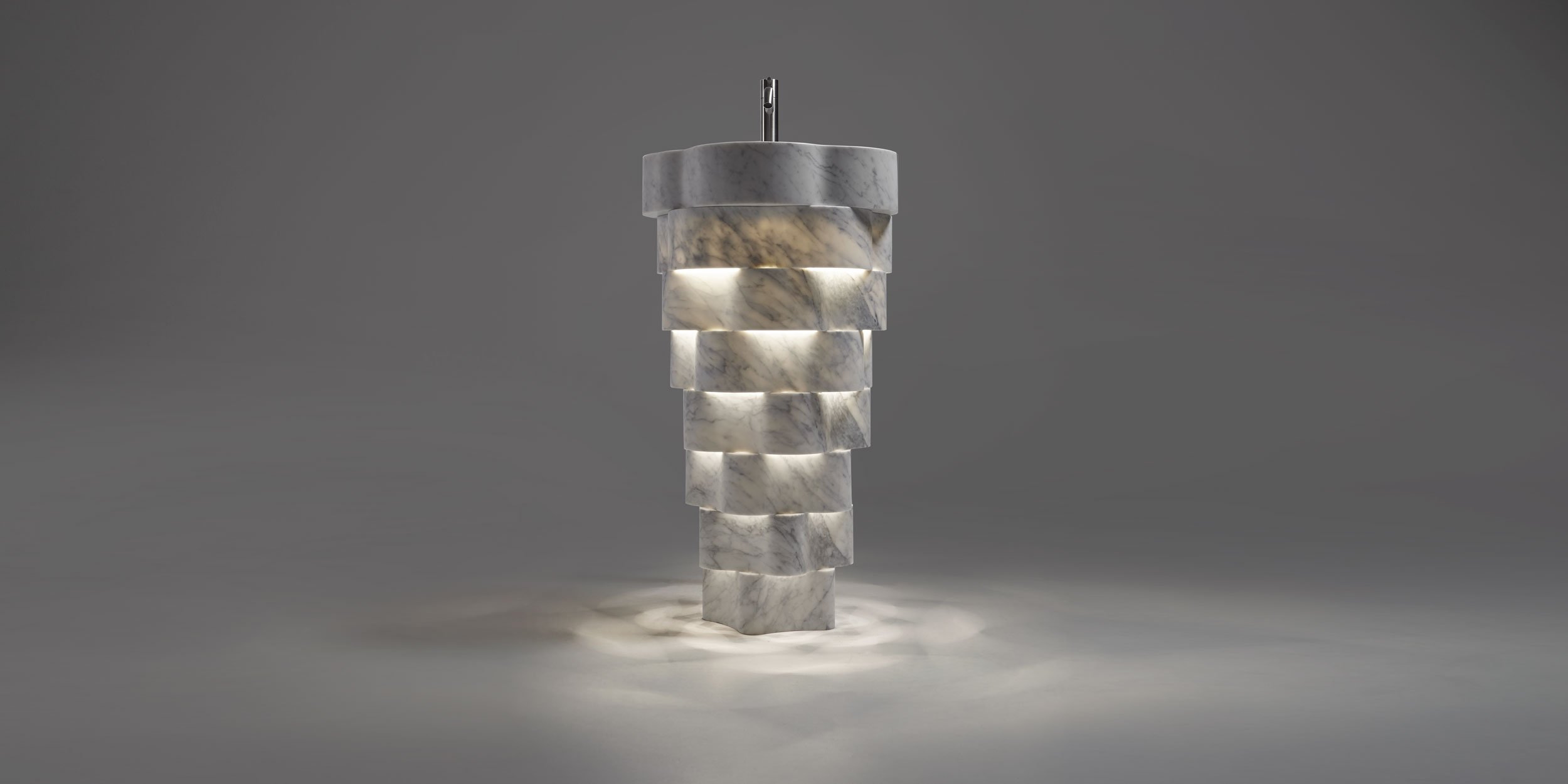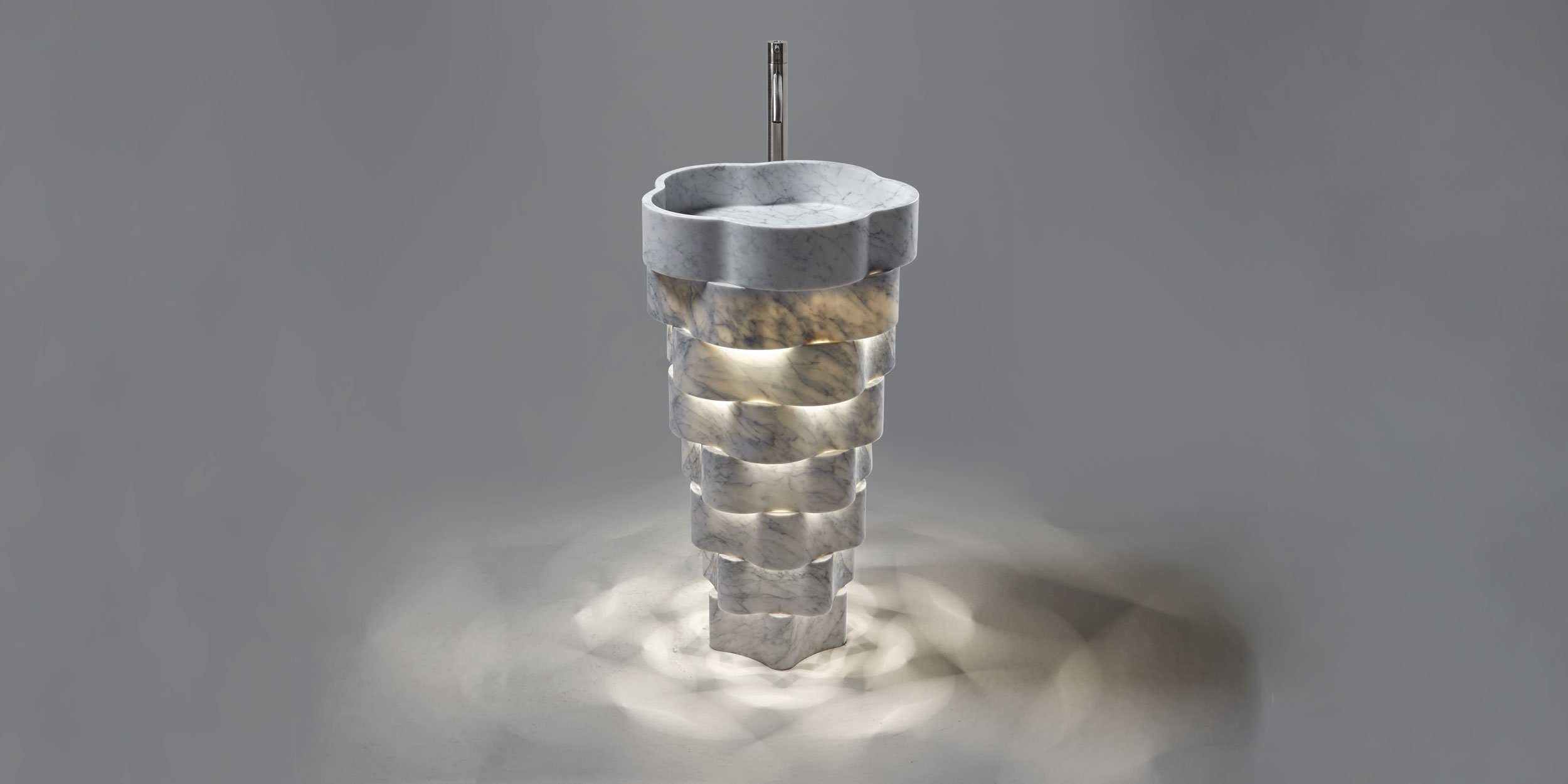 Работа человека встречается с природой, давая жизнь Intreccio, отдельно стоящему умывальнику, полностью сделанному из мрамора, который играет на соотношении легкости и прочности используемого материала, на балансе между изысканным предметом и внешне естественной формой. Intreccio представляет собой естественную эволюцию пути, предпринятого более года назад Антониолупи и Паоло Улианом для исследования взаимосвязи между древним материалом и новыми технологиями обработки. концентрические слои, которые располагаются в шахматном порядке, когда они перекрываются, продвигаясь вверх, чтобы определить игру света и темноты, а также полного и пустого, получаемую только путем изменения света на вогнутых или выпуклых формах. Фактически, Intreccio рождается из блока мрамора, разрезы которого оптимизированы для получения всех деталей, необходимых для создания трехмерного объема. Технологии обработки с числовым программным управлением позволили получить криволинейные и тонкие формы, легкие, как если бы они были сделаны из другого материала, а не из мрамора. С помощью Intreccio исследования antoniolupi дополнительно исследуют тему экономии ресурсов и материалов. Единый мраморный блок делится на 4 части, из которых изготавливаются 4 умывальника. Кольца, из которых состоит Intreccio, являются концентрическими, потому что они должны быть получены одно внутри другого из мраморного блока, что резко снижает количество отходов, образующихся при огранке. Не забывая о легкости, потому что вес всегда был важным фактором при производстве изделий из мрамора. Intreccio весит «всего» 55 кг. Легкость, технология, которая становится эстетическим выражением, и экономия материалов в лучшем случае резюмируют впечатляющий проект, элемент, который оживляет композицию элегантной и современной ванной комнаты.