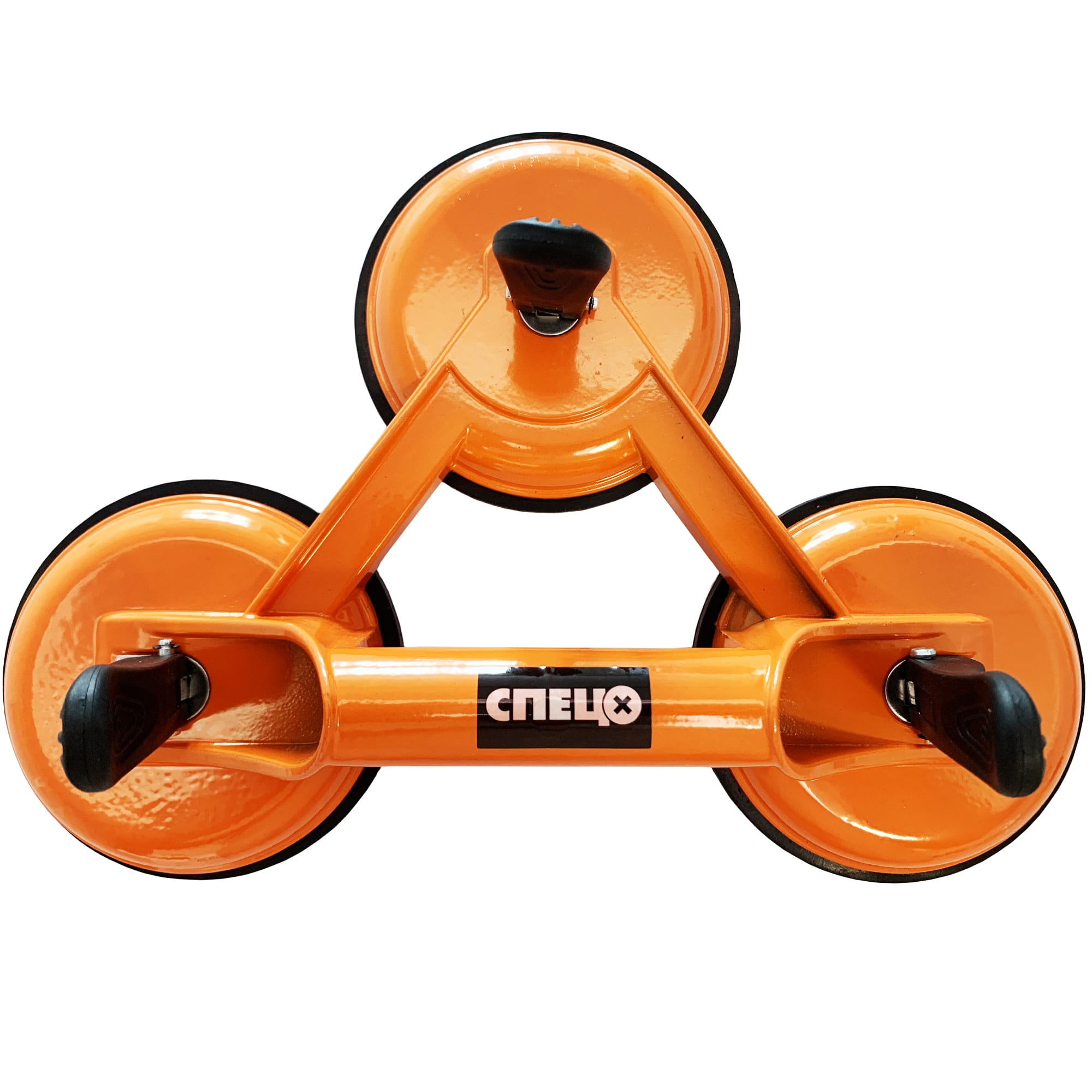 Тройной стеклодомкрат СПЕЦ обеспечивает безопасное и удобное перемещение листового стекла благодаря трём вакуумным присоскам и прочной конструкции.