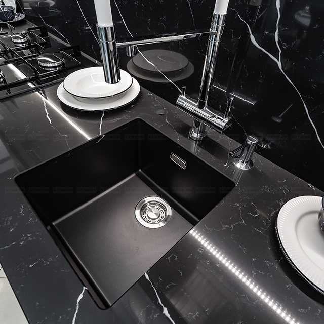 Кварцевый композит на 95% состоит из кристаллов натурального кварца. Остальные 5% - экологически чистые минеральные цветовые пигменты и полимерные смолы.