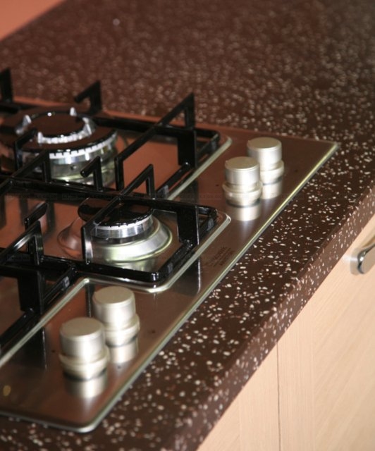 Основой для изготовления столешниц служит высококачественное ДСП, на которое методом холодного прессования наклеивается композитный материал Stone Twelve. Главное преимущество композитного материала — бесшовное соединение столешниц и стеновых панелей. Материал стыкуется между собой без видимых и осязаемых швов! Немаловажным фактором при выборе столешниц Stone Twelve служит возможность восстановить любые механические повреждения в домашних условиях. Раз в несколько лет поверхность можно также полировать, и она будет выглядеть как в день ее приобретения.Материал имеет невысокую теплоустойчивость, поэтому ставить горячее непосредственно на столешницу нельзя (обязательно использовать подставку под горячее).