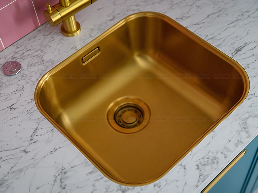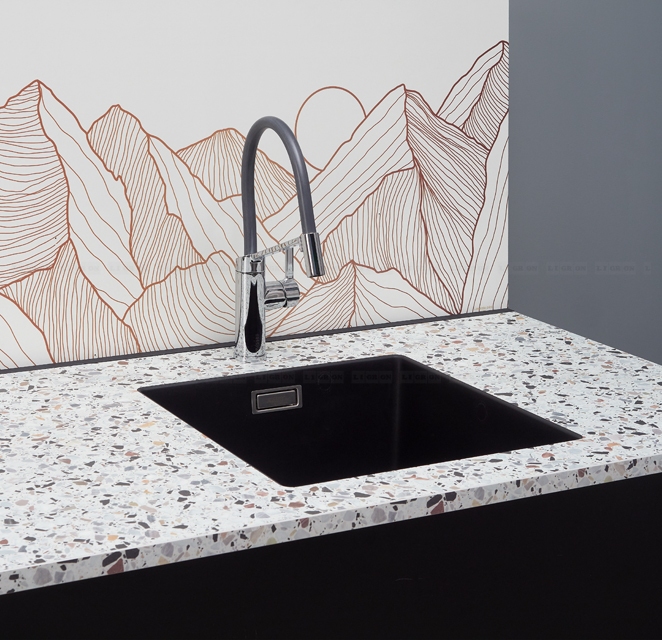 Предлагаются врезные мойки в один уровень со столешницей снизу (только компания Ligron врезает мойки в один уровень со столешницей из ламината снизу. Причем гарантия на все виды врезки моек – 5 лет). В один уровень со столешницей можно врезать разделочный элемент из кварца или керамики.
