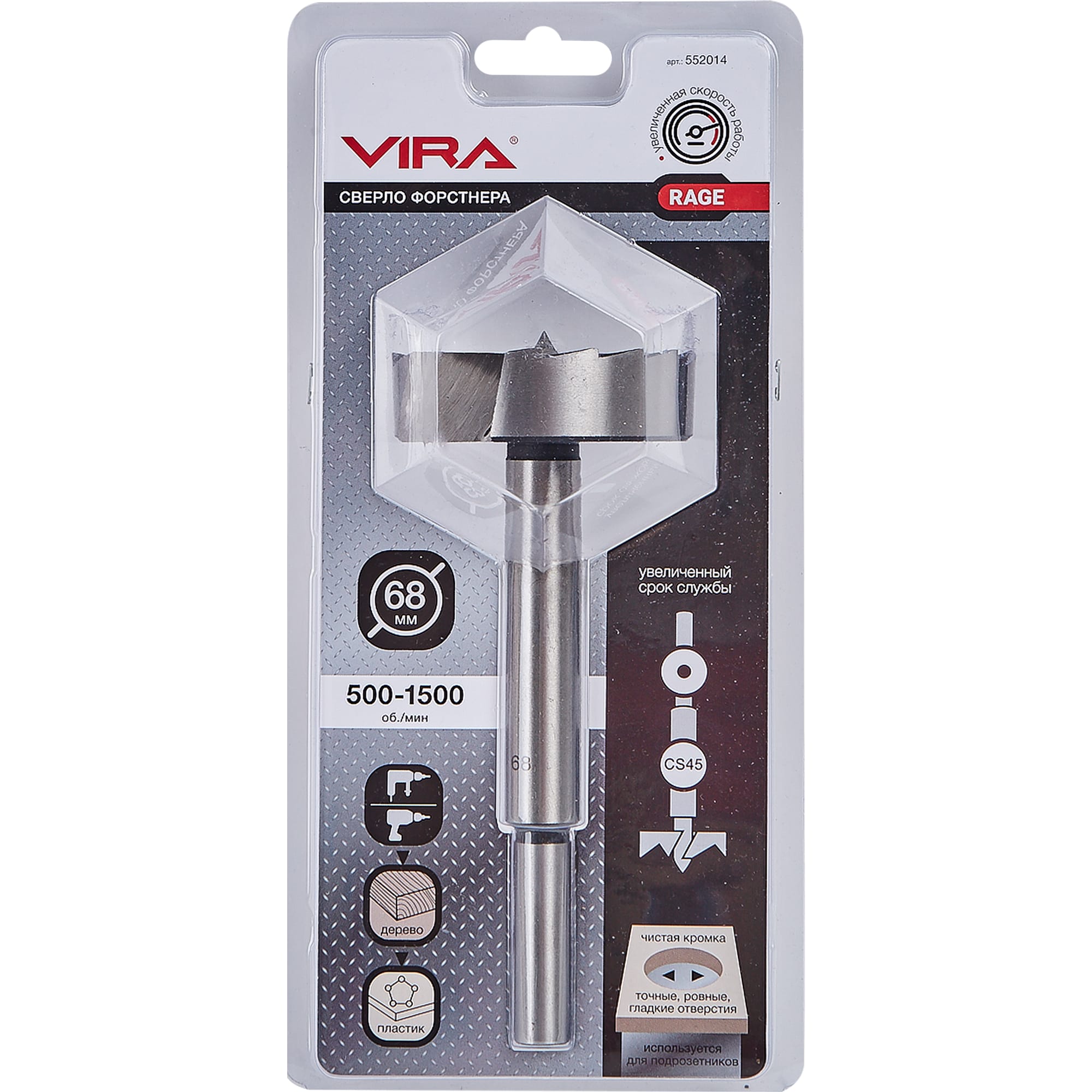 Сверло Форстнера VIRA Rage создано для безупречного сверления глухих и сквозных отверстий диаметром 68 мм в различных материалах. Инновационная конструкция гарантирует точность и чистоту обработки.