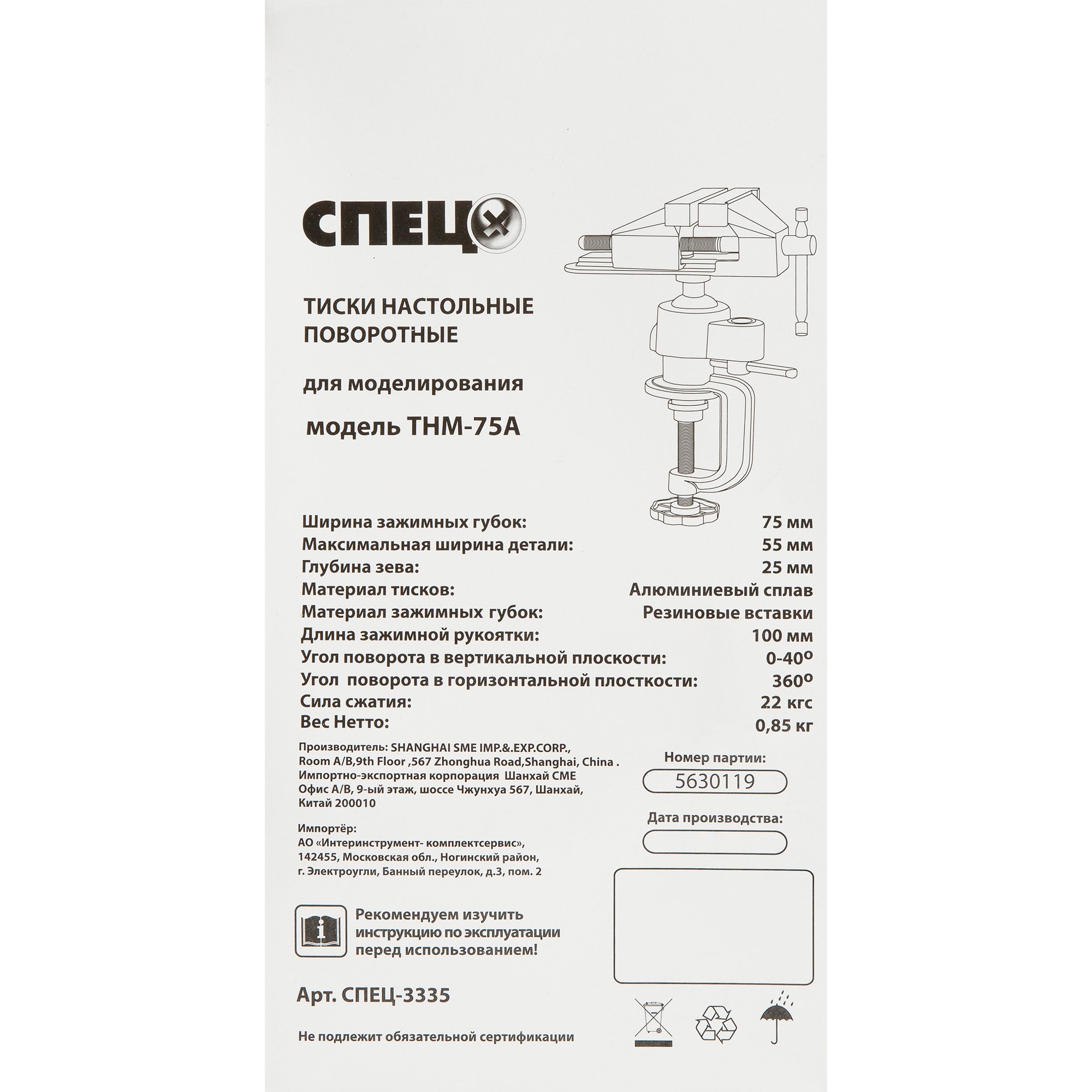 Поворотные тиски СПЕЦ ТНМ-75А для точного моделирования 82047644 STLM-0018350